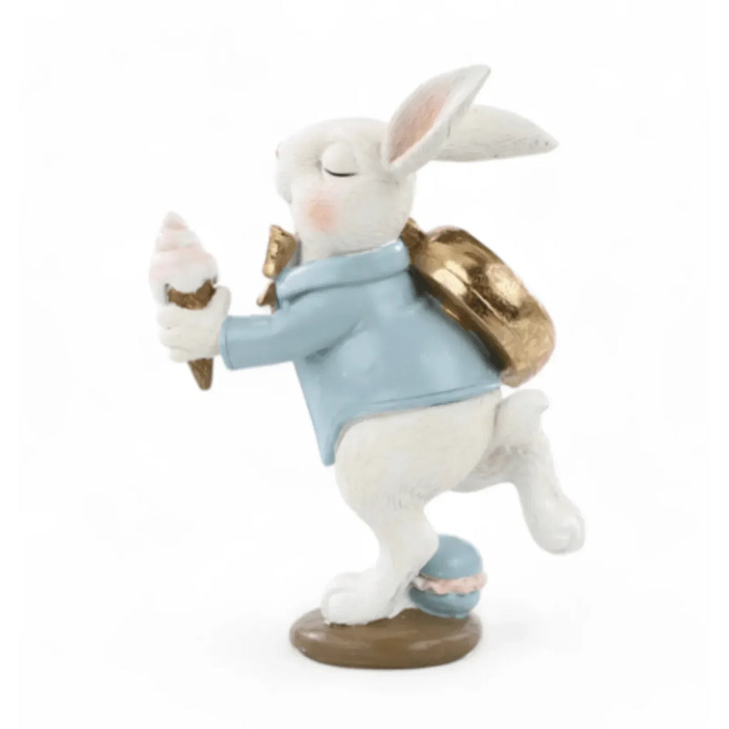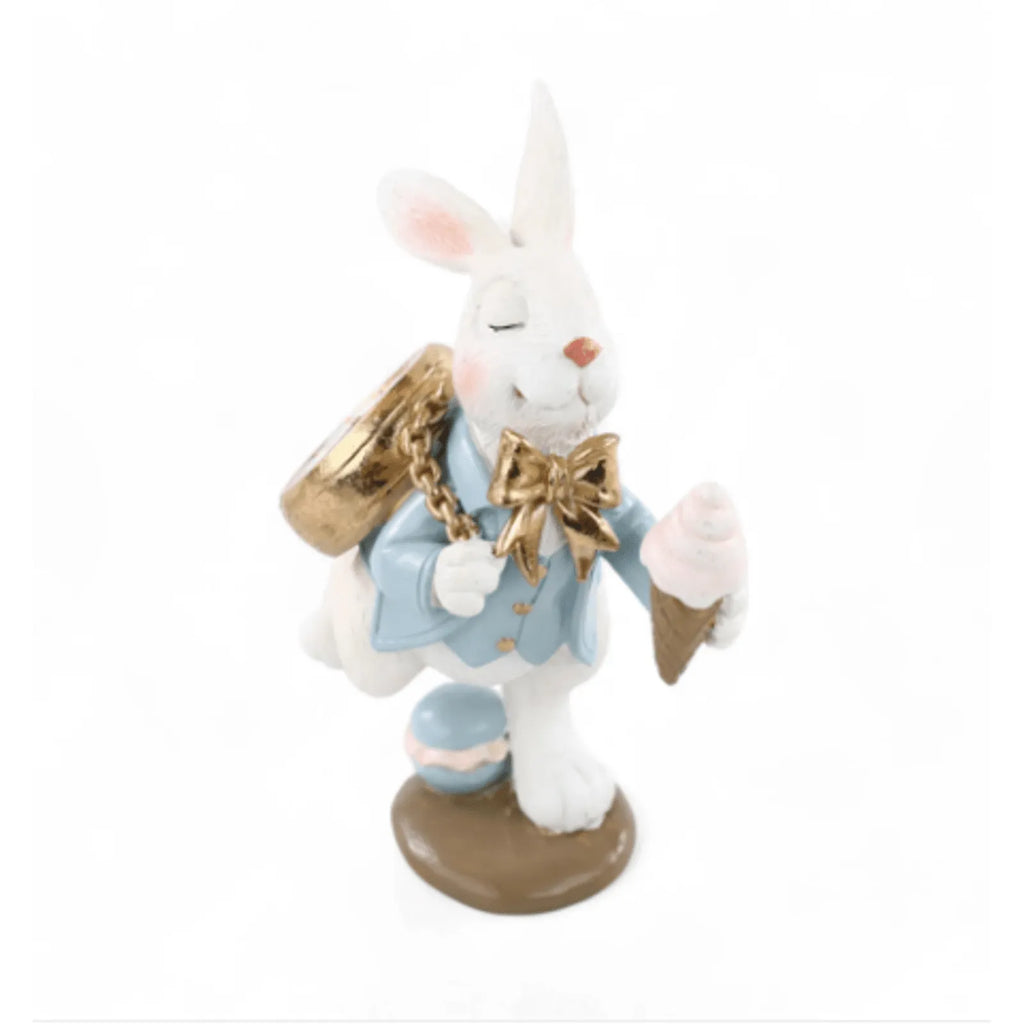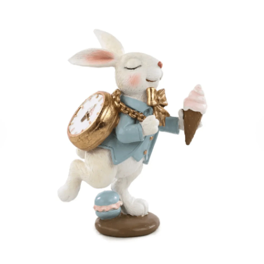 Inspirado nas elegantes patisseries francesas, este encantador coelhinho traz toda a doçura da Páscoa segurando um relógio, um macaron e um sorvete. Com detalhes delicados e acabamento refinado, essa peça é perfeita para compor a decoração de mesas, cozinhas, confeitarias e espaços temáticos.