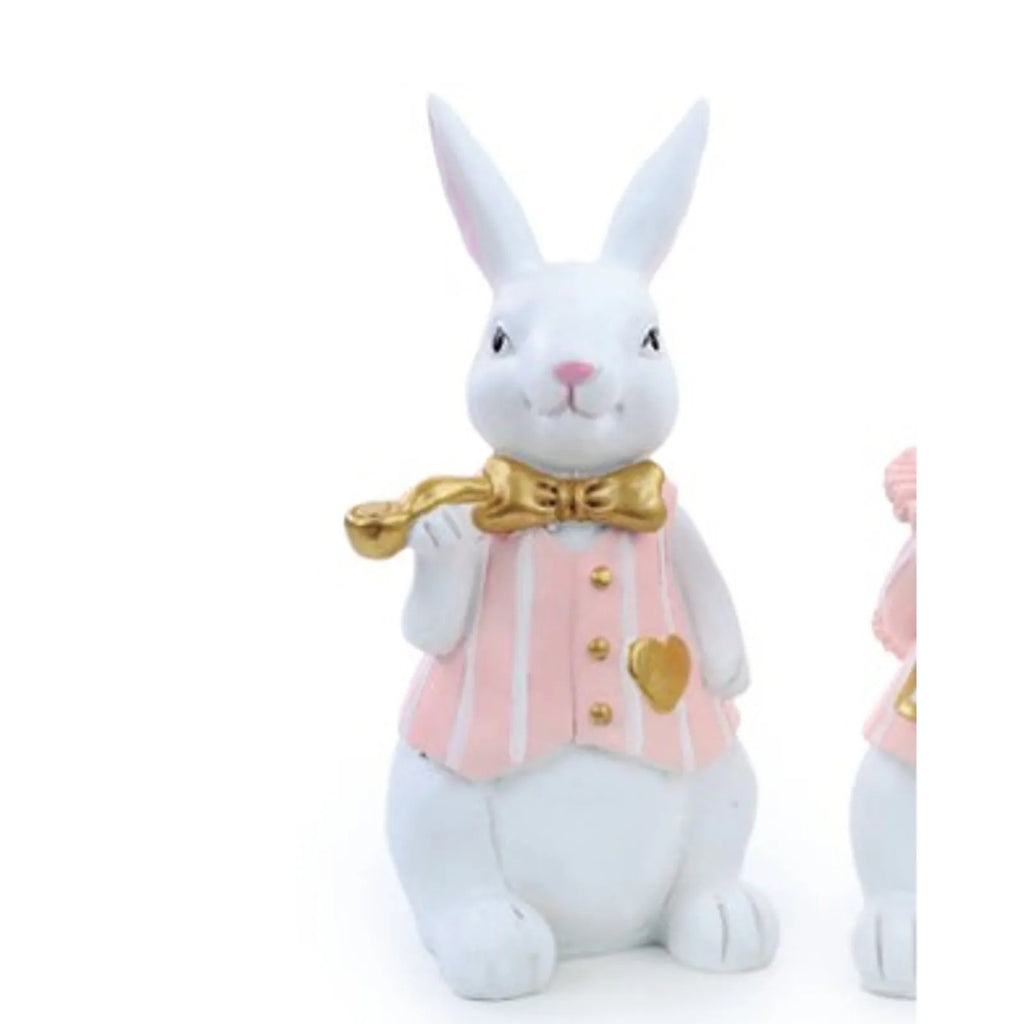 Este sofisticado coelho rosa veste um elegante colete e uma charmosa gravata dourada, trazendo um toque refinado e encantador à sua decoração. Com acabamento delicado e detalhes cuidadosamente esculpidos, essa peça é perfeita para compor ambientes como salas, quartos, escritórios e espaços temáticos.